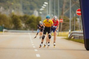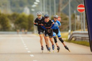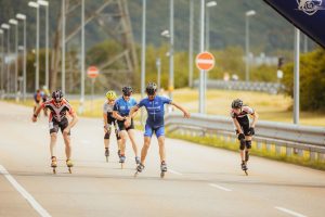 Bei den Herren setzte sich bereits frühzeitig ein einzelner Skater vom Feld ab, der seinen Vorsprung bis ins Ziel halten konnte. Der Kampf um Platz 2 verlief jedoch ähnlich wie bei den Damen: Eine größere Gruppe fuhr bis zum Schluss zusammen, sodass es auch hier zur Entscheidung im finalen Sprint kam. Hier konnte sich Bastian durchsetzen und wurde 2. Im Gesamteinlauf, dicht gefolgt von Andreas auf Rang 3. Mit Frank war noch ein dritter Allgäuer im Herren Rennen am Start, er belegte Platz 27.