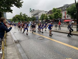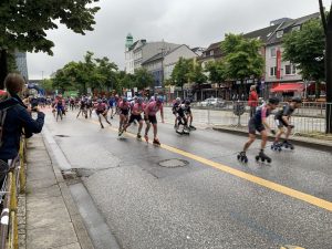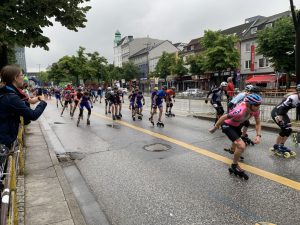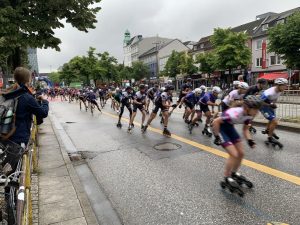 Erneutes Pech mit dem Wetter hatten die Inlineskater bei der dritten Etappe des German Inline Cups (GIC). Ausläufer einer Unwetterfront haben die 21km lange Strecke quer durch Hamburg nass und damit sehr rutschig gemacht. Da halfen auch Regenrollen fast nichts mehr.