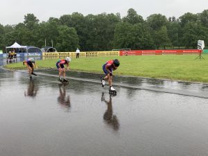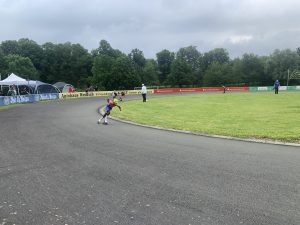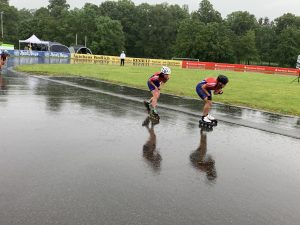 Am Samstag ging es bei Regen mit dem Parcours los. Luca fuhr in der Klasse Schüler D Herren mit einem fehlerfreien Lauf auf Platz 2. Eliza, die in der am stärksten besetzten Altersklasse mit knapp 20 Teilnehmern an den Start ging, musste sich mit Platz 16 begnügen. Sie stürzte leider auf Grund der nassen Strecke.