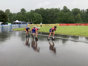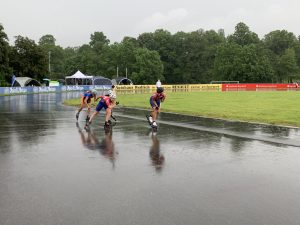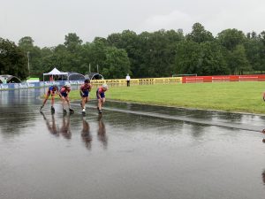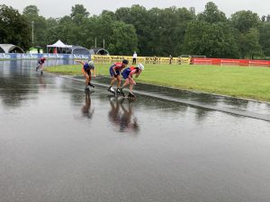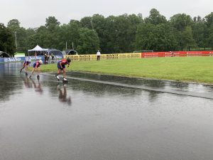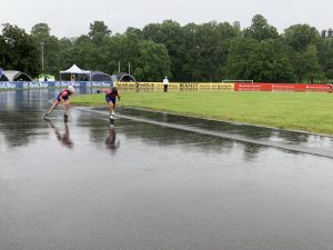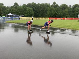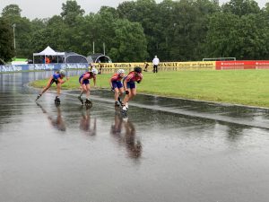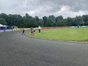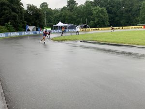 Am Sonntag konnte der 500m Sprint für die meisten Altersklassen noch im trockenen ausgetragen werden, erst bei den letzten Läufen setzte der Regen ein. Alle weiteren Wettkämpfe fanden, wie schon am Vortag, im Regen statt. Leni und Ashley hatten neben dem Sprint 1000m, 5000m Punkte und 5000m Ausscheidung zu laufen, die restlichen Allgäuer 1000m, und 3000m Punkte.