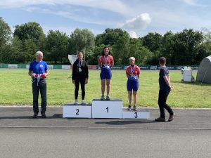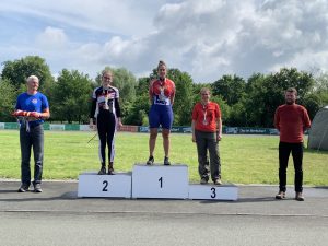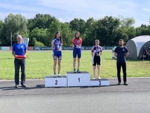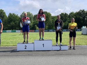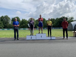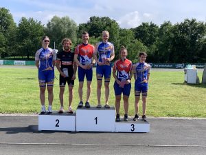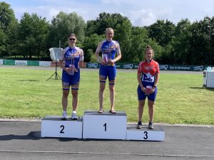 Ashley (Aktive) gewann 3-mal Bronze und 1-mal Silber im Punkterennen. Ina (U50) wurde dritte im Sprint und auf den beiden längeren Strecken zweite. Frank (U70) sprintete auf Platz 6 und beendete die anderen Rennen auf Platz 5.