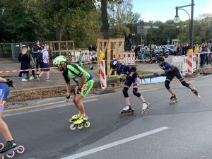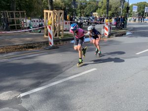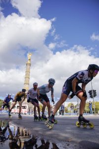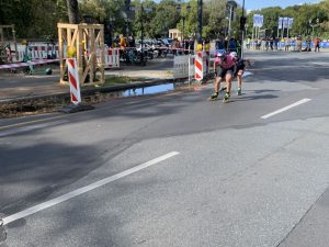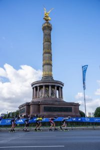 Parallel zum 50. Berlin Marathon der Läufer fand auch heuer wieder der Berlin Marathon Inlineskating statt. Allerdings diesmal mit einer Neuerung: Anstelle der bereits bekannten 42 km langen Strecke durch die Berliner Innenstadt, fand der Marathon größtenteils auf einem ca. 7 km langen Rundkurs statt, der 5-mal abgefahren werden musste, bevor es dann Richtung Ziel ging. Die größten Highlights der Strecke, wie z.B. die Siegessäule, die einen Wendepunkt der Runde markierte und die Durchfahrt des Brandenburger Tors im Zielsprint, blieben trotzdem erhalten.