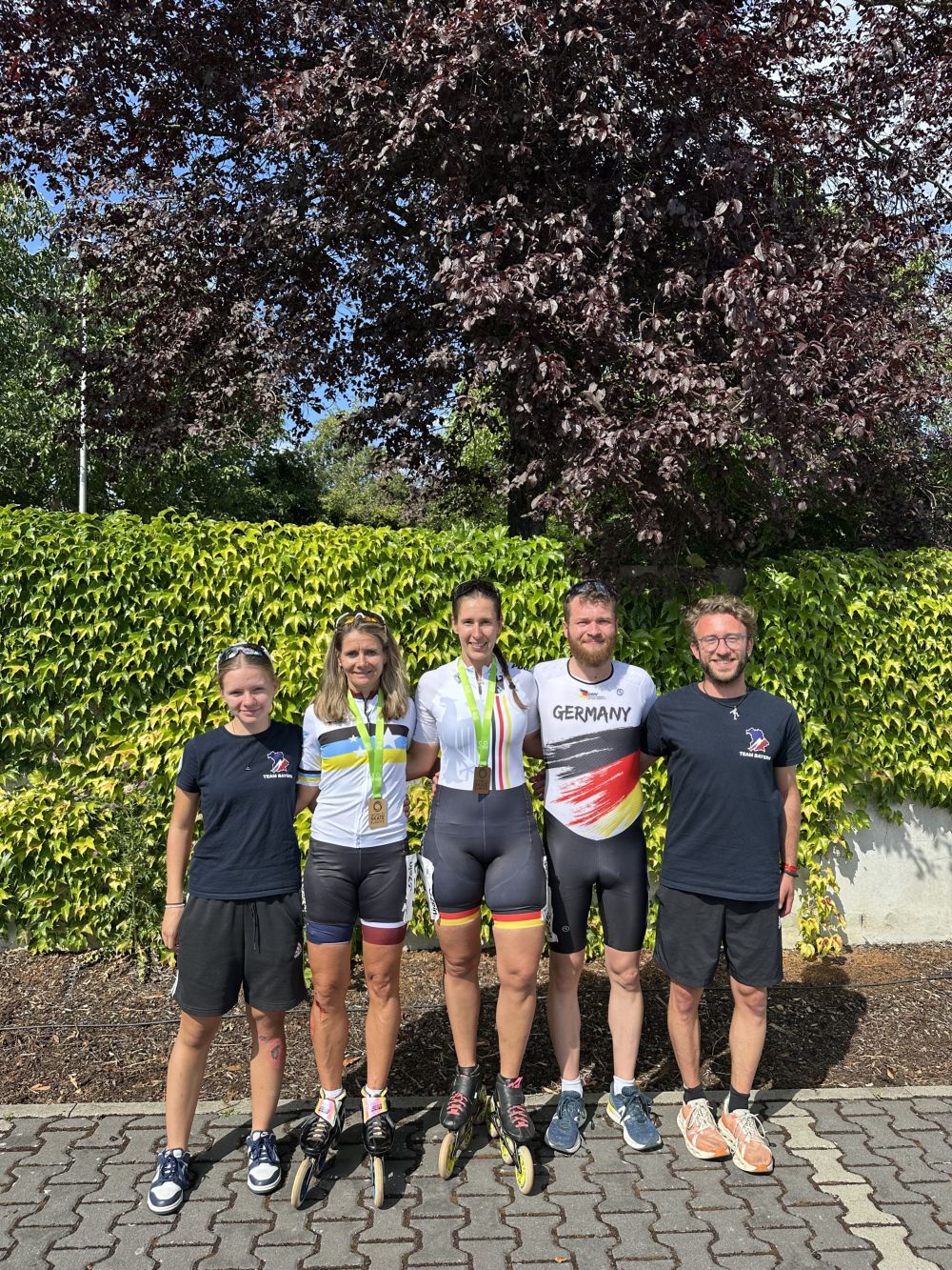 Am vergangenen Sonntag hat eine Auswahl vom Skate Club Allgäu erfolgreich beim European Masters Marathon im Inline Speedskating teilgenommen. Hierbei handelt es sich um die Europameisterschaft der Masters über die Marathondistanz. In der Masters Kategorie kämpfen Sportler und Sportlerinnen, die älter als 30 Jahre sind, um die begehrten Medaillen und Titel. Sie unterteilt sich in die jeweils 10 Jahre umfassenden Altersklassen U40 bis U70 und die Klasse O70, sowohl für Damen als auch für Herren. Die hohen Temperaturen während des Rennens und der löchrige Asphalt des Rundkurses verlangten den Allgäuer Speedskatern Andreas Pätzold, Wolfgang Schindler und Sarah Puffer einiges ab. Doch trotz der starken europäischen Konkurrenz können sich die Resultate sehen lassen: Bei den Herren gab es für den Skate Club Allgäu zwei Top-Ten Platzierungen mit Andreas auf Platz 5 bei den Masters U40 und Wolfgang auf Platz 8 der Masters U60. Sarah gelang bei den Masters U40 Damen der Sprung aufs Treppchen. Sie erreichte als dritte das Ziel. Auch die Vorstände des Vereins freuten sich über die tollen Ergebnisse. „Wir sind ganz begeistert und Stolz, was unsere Sportler geleistet haben – ganz besonders Sarah! Da hat sich das harte Training gelohnt.“
